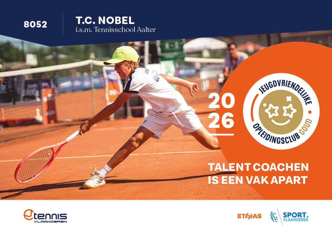 De jeugdwerking bij TC Nobel is een cruciaal onderdeel voor het heden maar uiteraard ook voor de toekomst. Hiervoor werken we heel nauw samen met de Tennis en Padelschool Aalter onder leiding van Donald Van Landschoot en Filip Van Duyse. Dat deze samenwerking loont blijkt eens te meer uit de erkenning die we krijgen.